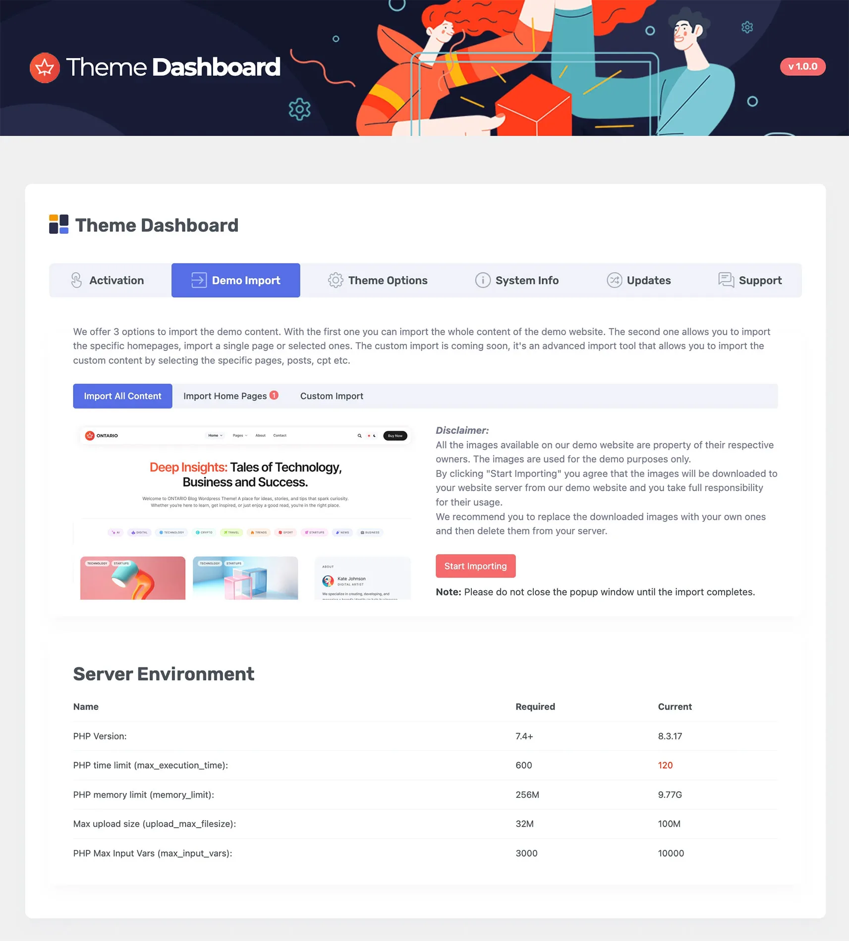 We’ve released a new import demo tool. It’s an absolutely new tool that works with the demo data. Using this tool you import only that data and media which is used on the pages, posts etc. no more duplicated media files, data etc. Moreover, now all the customers have the option to import new released homepages in one click.